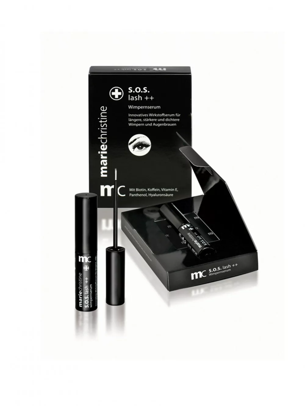 Az új fejlesztésű szempilla növesztő szérum természetes hatóanyagaival (hyaluronsav, biotin, E-vitamin, B5-vitamin, koffein) intenzíven elősegíti az új szempillák növekedését, a meglévő pillákat pedig erősíti.