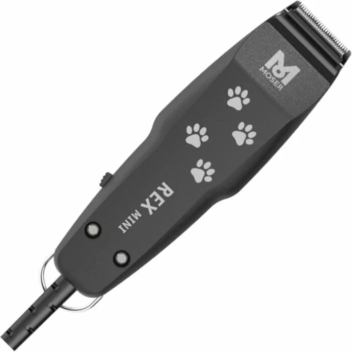 A Moser márka kompakt, könnyű Rex Mini nyírógépe professzionális segédeszköz a macska vagy kutya mancsain, fülén és pofáján található szőrszálak megfelelő lenyírásához! Precíziós és gyémántcsiszolású, extra keskeny fej, rozsdamentes acél szőrnyíró finom fogazású kialakítással a nehezen hozzáférhető testrészek eléréséhez.