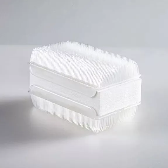 Speciális, kétoldalú, mágnes hatású portalanító kefe, amely különleges kialakításának és szálainak köszönhetően tökéletesen távolítja el a körömágyba ragadt porszemcséket. Kb. 3000 db szilikonos tapintású sörtéje segítségével szinte magához vonzza a port. Szárazon és