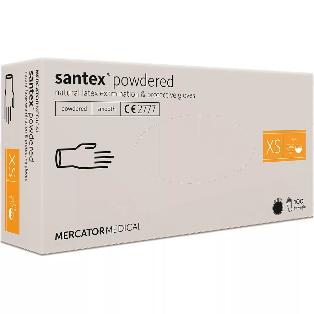 SANTEX® Púderezett latex kesztyű 100db/doboz XS méret MMC-RD11010001