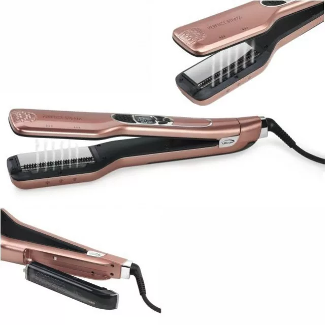 A Perfect Steam egyedülálló gőzfunkciója a hajformázás során hidratálja a hajat. Megakadályozza, hogy a haj kiszáradjon. A titánlemezek és az 5 hőbeállítás lehetővé teszi, a tökéletes hajvasalást. A titánlemezek és gőzkazánok közötti leválasztható finom fésűvel a hajat fésülheti a formázás során, és ez biztosítja, hogy a hajszálak egyenletesen oszoljanak el a titánlemezeken, és így a haj sokkal természetesebb lesz, mint egy klasszikus hajvasalás után. Az eredmény tökéletesen ragyogó és fényes haj.