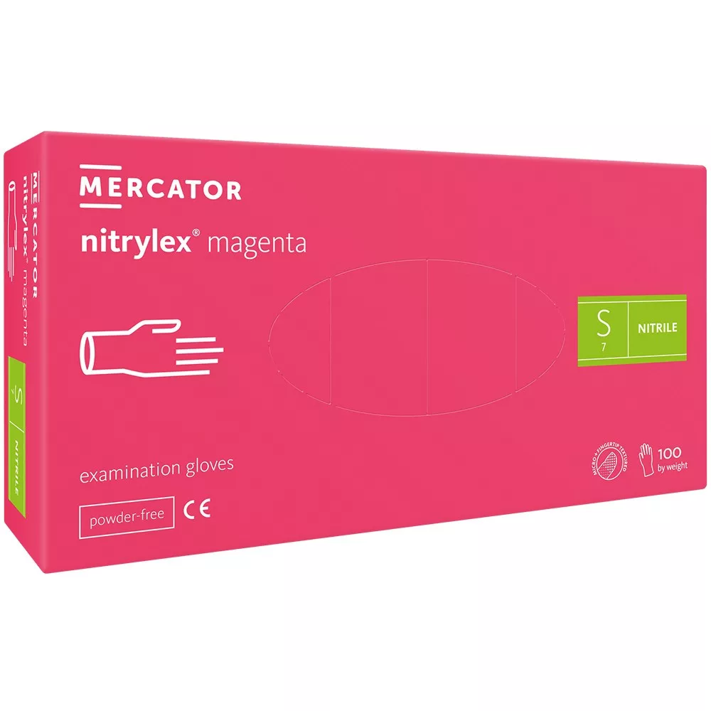 nitrylex® hagyományos púdermentes nitril kesztyű magenta (élénk rózsaszín) színben, amely védelmet nyújt a baktériumok, gombák és vírusok ellen. Univerzális termék magenta színben.