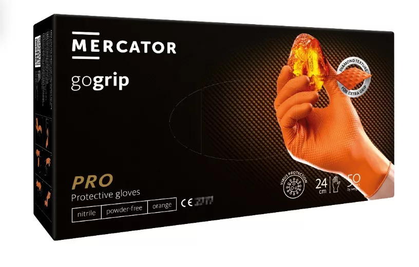 A MERCATOR® gogrip rendkívül rugalmas nitril kesztyűk kétszer olyan erősek, mint a piacon kapható standard kesztyűk. A tömör nitrilből készült kesztyű egyedi gyémánt 3D textúrájú, amely erőssé és stabillá teszi a fogást, miközben nem korlátozza a pontosságot. Az eredeti MERCATOR® gogrip szerkezetnek köszönhetően a mobilkészüléket a kesztyű levétele nélkül is kezelheti. Ezenkívül a forradalmian új gyémánt 3D textúra megakadályozza a kezek izzadását használat közben, és ez növeli a munkavégzés kényelmét, miközben minimálisra csökkenti a kézbőr károsodásának kockázatát.