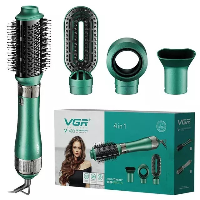VGR Professzionális Meleglevegős hajformázó 4 hajformázó fej 1000W Zöld/Fekete V-493G