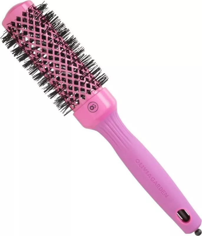 Az Olivia Garden Expert Shine Pink Körkefe 35mm gyorsítja a hajszárítást, csökkenti az elektrosztatikusságot és extra fényt ad a hajnak. Turmalin-ion technológiával zárja a haj kutikuláit, megakadályozva a kiszáradást.